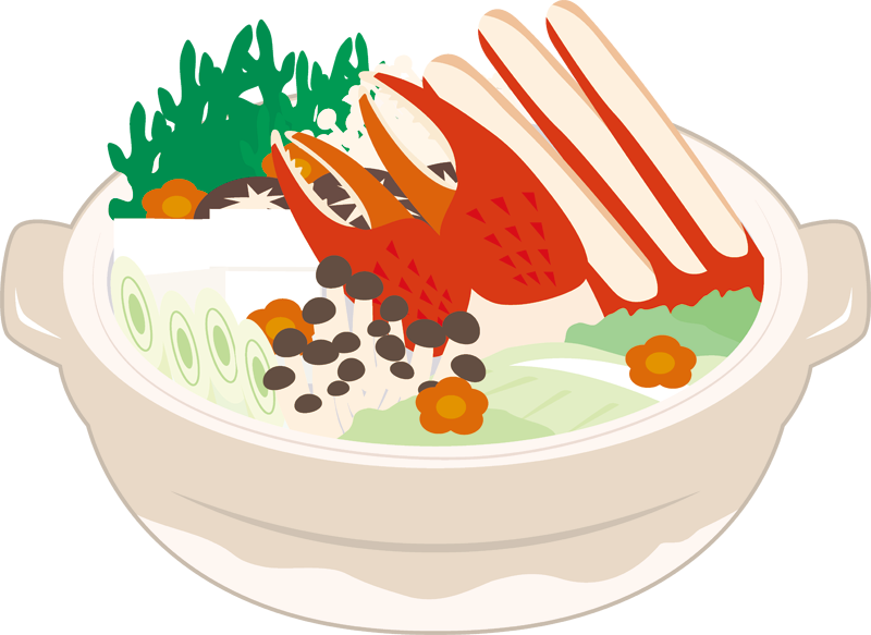 土鍋でカニ鍋のイラスト。忘年会や旅館での宴会イメージなどとしてお使いいただけます。
