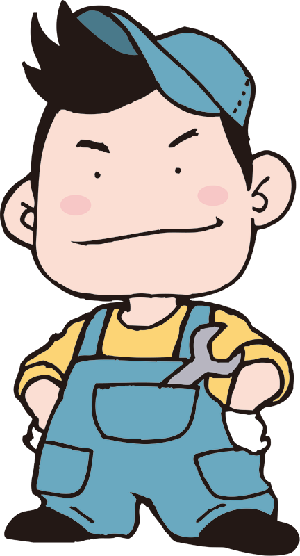 ドヤ顔の修理業者のデフォルメイラストです。車の整備や修理、水道工事や家電の取付け工事などのイメージとしてもお使いいただけます。