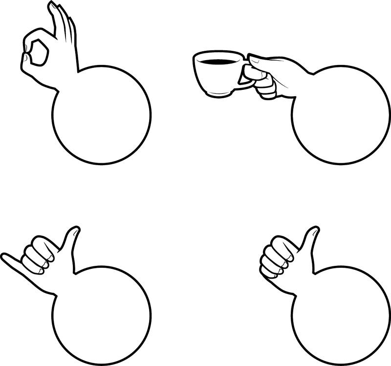 ハンドサインと吹き出しを組み合わせたシリーズのイラスト4種の詰め合わせです。