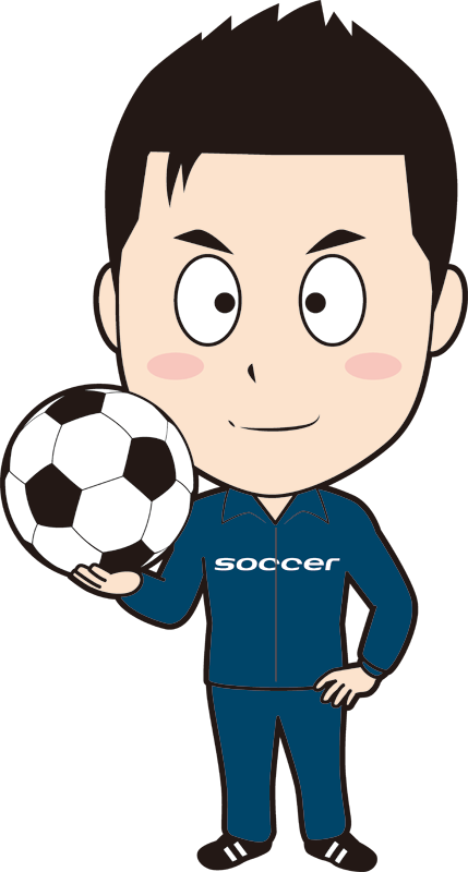 二頭身キャラのサッカーコーチのイラスト。