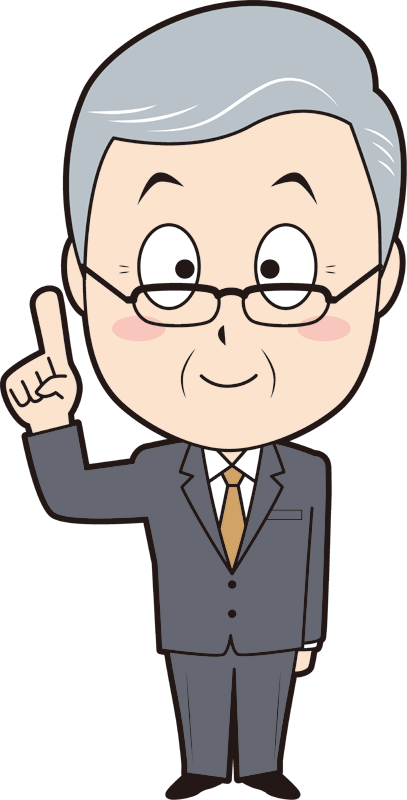 1をカウントしている二頭身キャラのシニアビジネスマンのイラスト。
