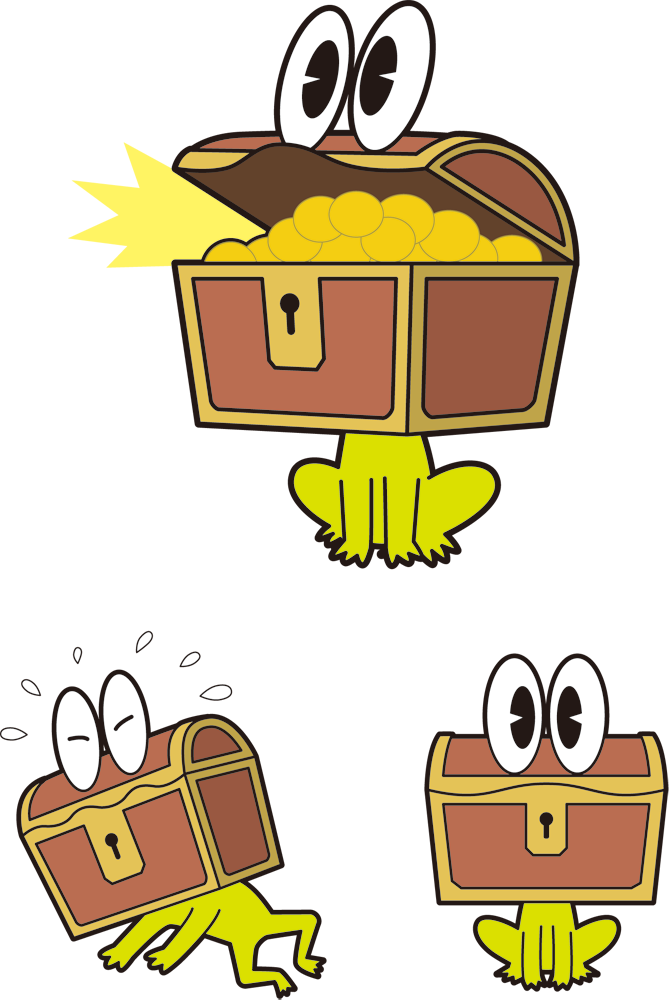 お宝カエル 2018.01.202022.05.14 このキャラクターは、宝箱と一体化したカエルでお金や財宝が好物です。 サイズ[335px×500px]背景透過PNG 下のボタンからダウンロードできます。 “お宝カエル” をダウンロード 00287.png – 143 回のダウンロード – 179 KB