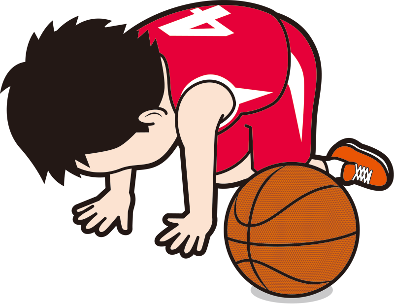 がっくりしている人々を描いた挫折シリーズの「挫折する男子バスケット選手」のイラスト素材です。