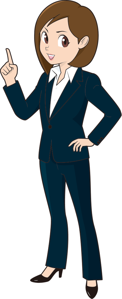 若い活動的な女性ビジネスマンのイメージで描きました。プレゼンや研修などで何かを説明・解説している素材としてお使いください。
