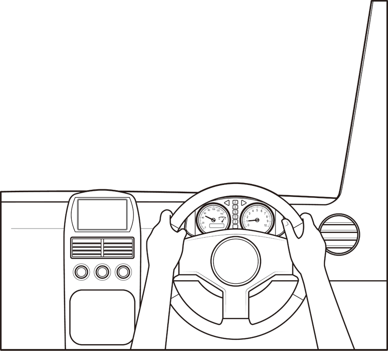 一人称視点の運転席イラストです。風景画像と組み合わせることでドライブ風景として使えます。