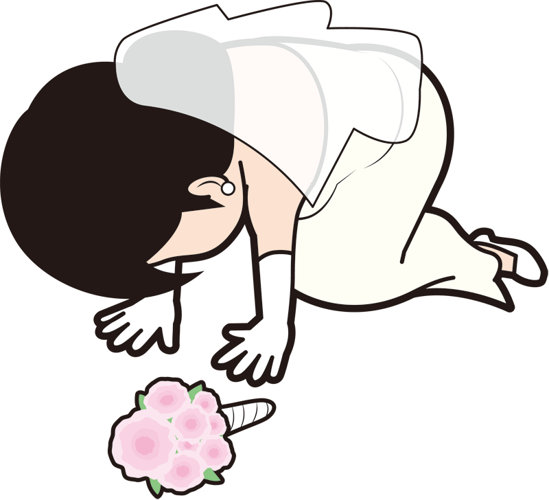 がっくりしている人々を描いた挫折シリーズの「挫折する新婦」のイラスト素材です。