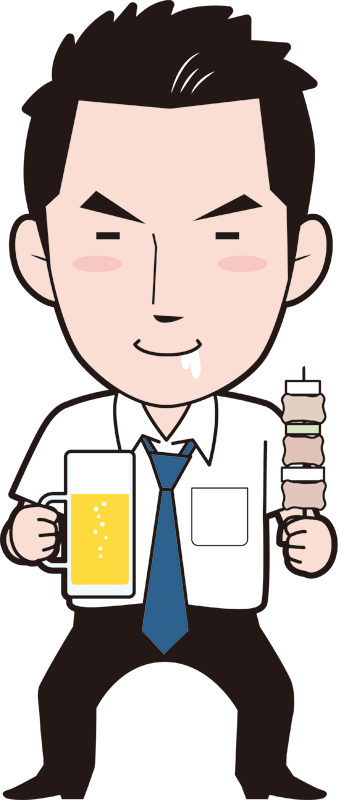ビールと美味しいもの大好きな腹ペコグルメ男性のイラストです。