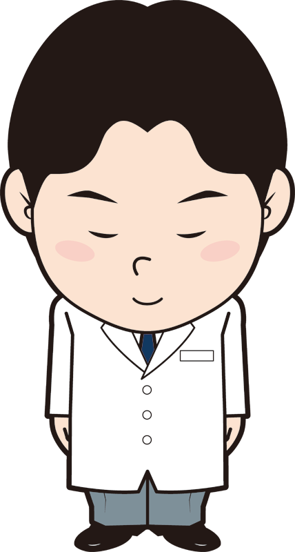 お辞儀する白衣男性のイラストです。医療関係や研究開発系などにお使いください。