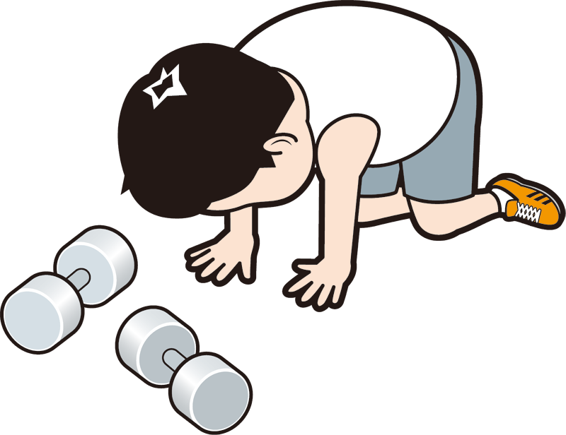 挫折し落ち込む人たちを描いた『挫折シリーズ』の男性トレーニーです。筋トレやダイエットは継続が大切ですね。