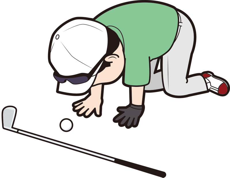 がっくりしている人々を描いた挫折シリーズの「挫折する男性ゴルファー」のイラスト素材です。