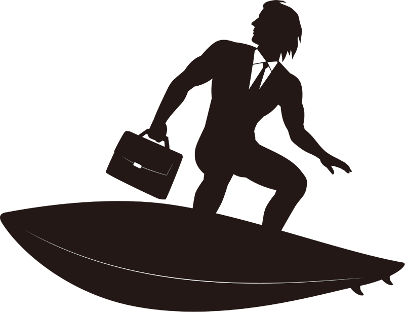時代の波に乗るビジネスマンというイメージで描いたシルエットイラストです。