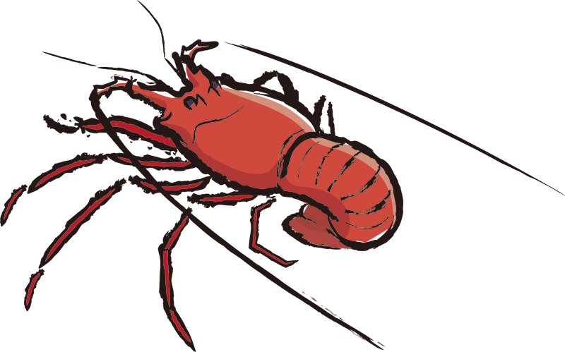 イラレのブラシ機能を使って毛筆画風に仕上げた伊勢海老のイラスト。