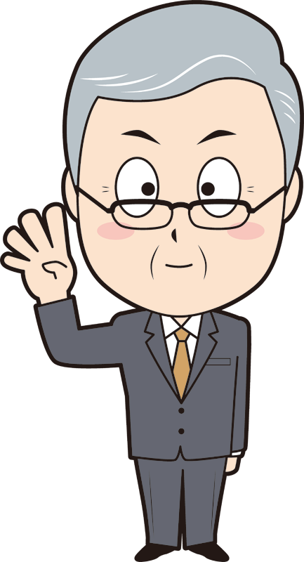 4をカウントしている二頭身キャラのシニアビジネスマンのイラスト。